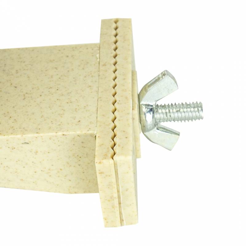 Handige voerbak of waterbak gemaakt van bamboe en diervriendelijk materiaal. Het waterbakje hang je simpel aan de tralies met een vleugelmoer. Het bakje kan je met een beweging vastklikken in het ophangmechanisme. Zo gooit de kromsnavel vogel zijn eten en drinken niet meer om.