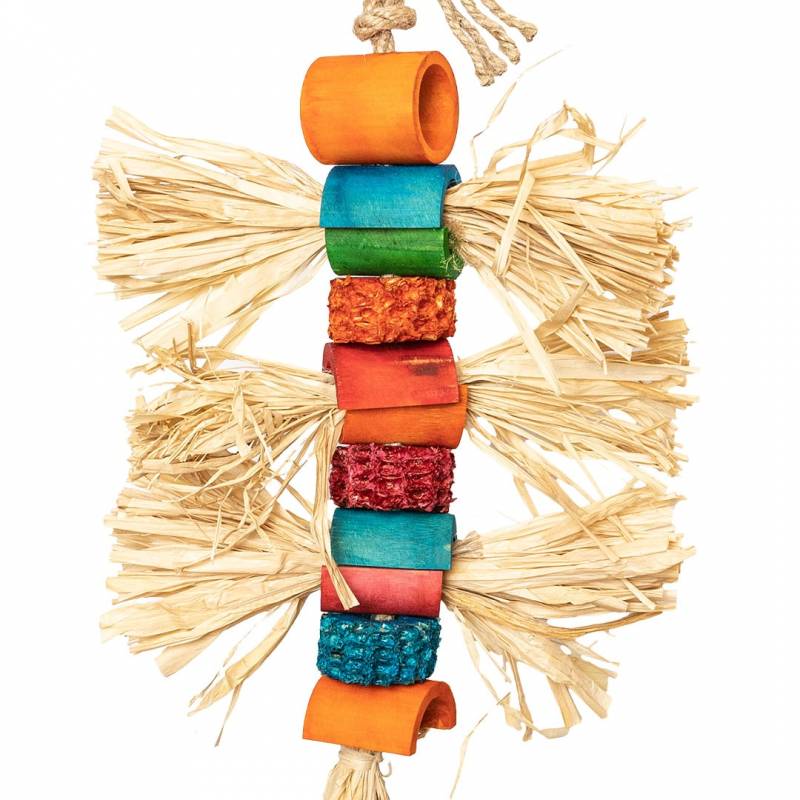 - Wissel het speeltje af met andere natuurlijke vogelspeeltjes om verveling te voorkomen.