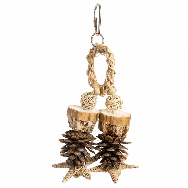 Ontdek de Back Zoo Nature Pure Line Forest Ring een speels, natuurlijk en uitdagend vogelspeeltje dat perfect aansluit bij het instinctieve gedrag van jouw kromsnavel. Dit speeltje is gemaakt van pure materialen zoals zeegras, dennenappels en mahonieschijfjes. Daarmee biedt het niet alleen afleiding en plezier, maar ook een mooie manier om het natuurlijke foerageergedrag van je vogel te stimuleren.