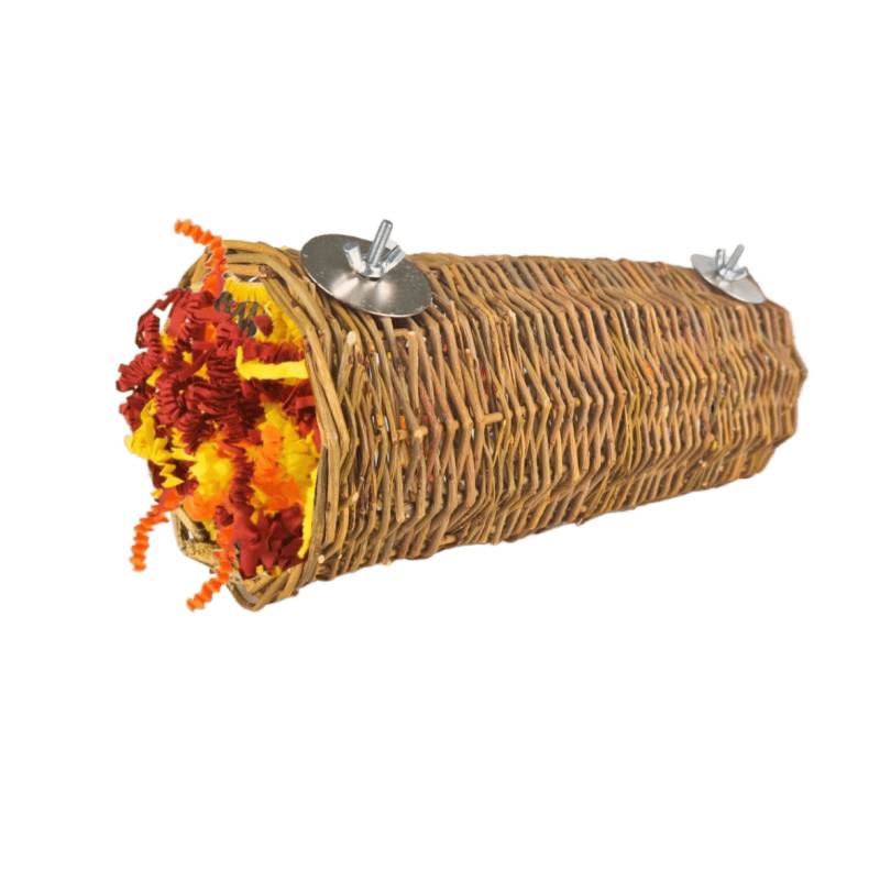 De Back Zoo Nature Willow tunnel kan je gebruiken als schuilplaats, maar ook als foerageer speeltje. Verstop wat lekkere zaden of een snack in de tunnel en vul deze op met snipperpapier. Zo stimuleer je jouw parkiet of papegaai om zijn eigen eten te zoeken. Iets dat ze in de natuur ook doen!