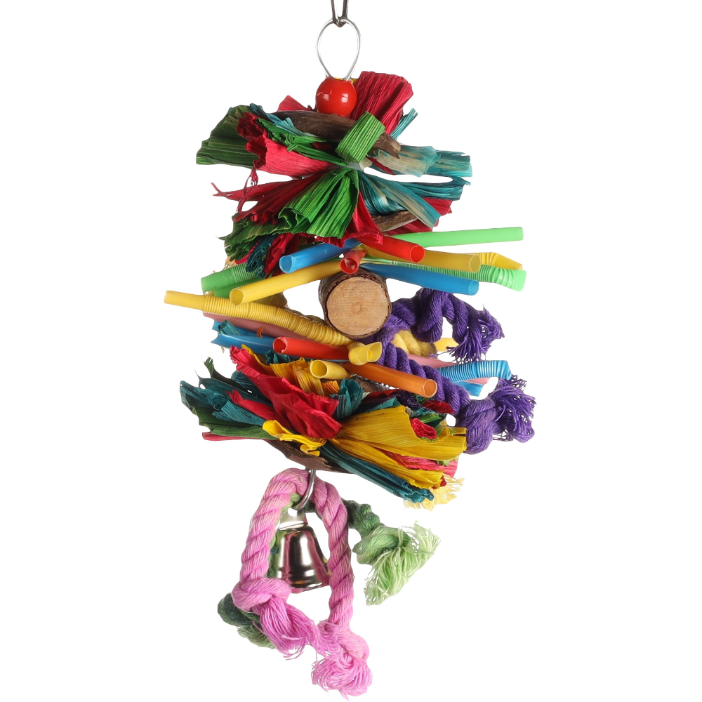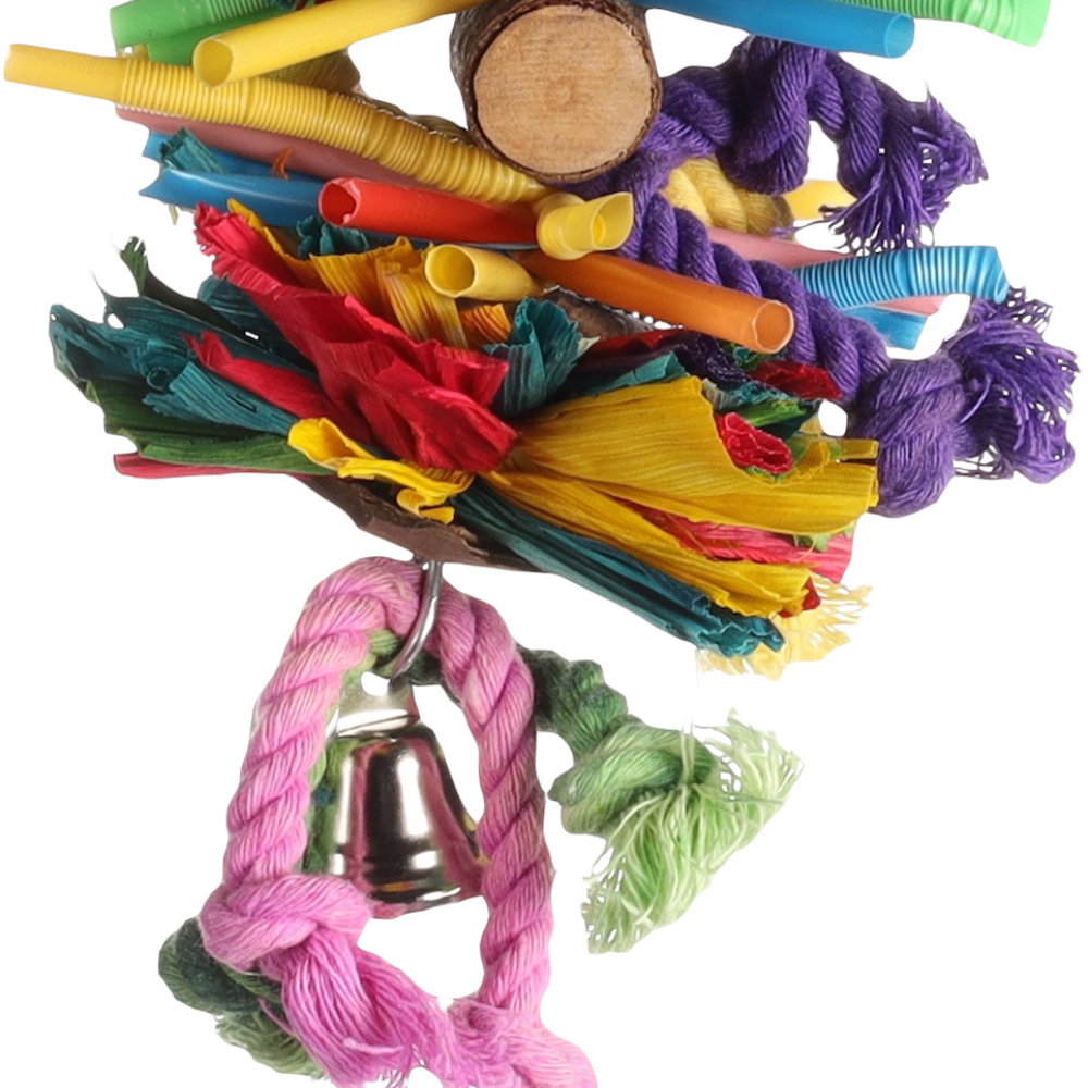 Je parkiet zal zich uren vermaken met de kralen, touwtjes, stokjes en zelfs stukjes kokosnoot. En alsof dat nog niet genoeg is, zorgt het kleine belletje onderaan voor nét dat beetje extra plezier (én een gezellig geluidje in huis!).