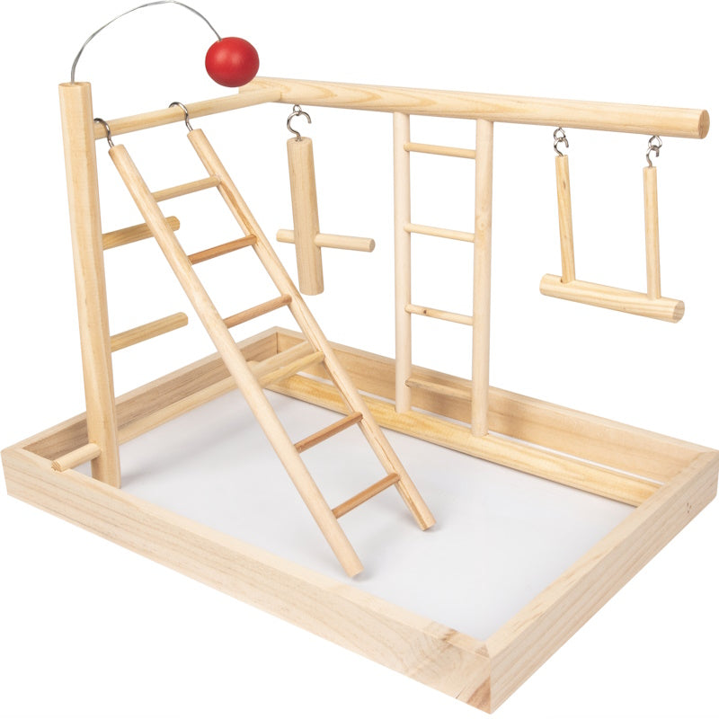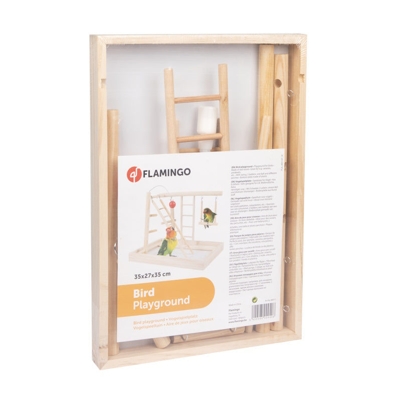 De Flamingo speeltuin is meer dan een leuke accessoire buiten de kooi: het is een multifunctioneel speelparadijs dat zowel fysieke oefening als mentale stimulatie biedt. Gemaakt van duurzaam dennenhout en compleet met ladder, schommel, zitstokjes, speelbal. Dit houten vogel klimrek nodigt uit tot klimmen, schommelen, pikken en foerageren.